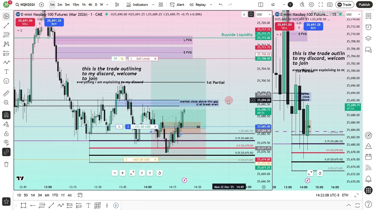 PT2H38M53SIn this live trading session, the host discusses key trading strategies and market analysis for December 22, 2025, emphasizing the importance of news impact, particularly for the USD, and the expected volatility through the holiday season. Viewers are guided through a detailed top-down analysis of the NASDAQ, exploring price action patterns and liquidity levels, while encouraging patience and informed decision-making in their trading practices.
